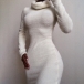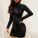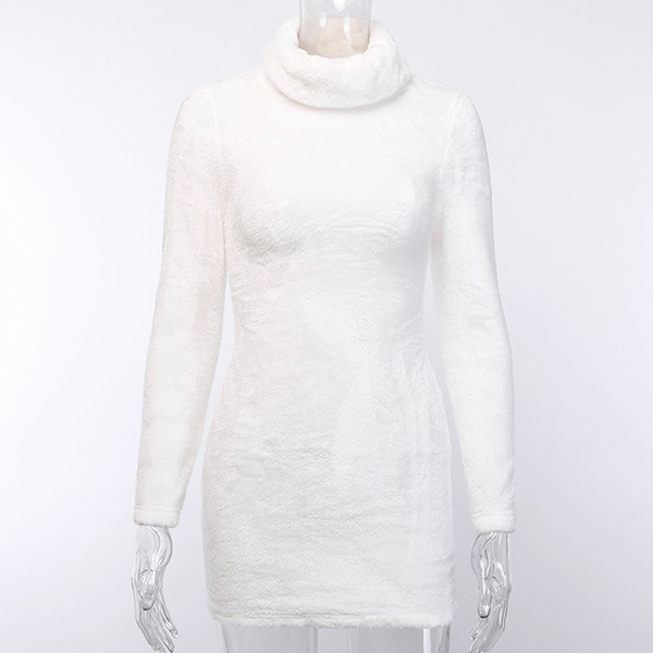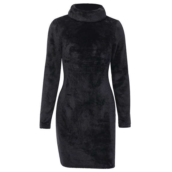 Fashion Solid Color Long Sleeve Turtleneck Slim Fit Plush Dress