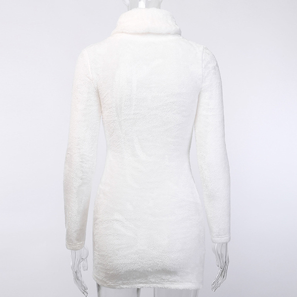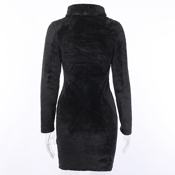 Embrace the cold days with this plush dress. Solid color tone design makes it look simple,stylish yet generous,while the plush fabric and turtleneck design can give you a warm day. The fit silhouette design also can showcase your slender figure. Try to match with your overcoat and over-the-knee boots for a charming winter look!