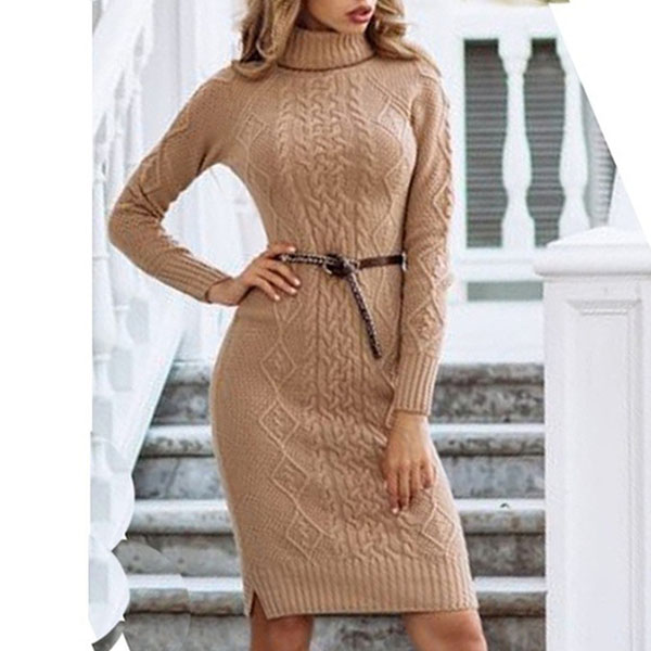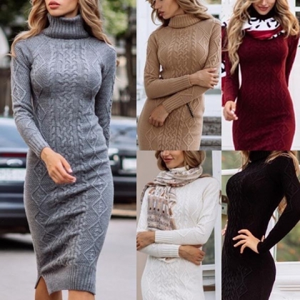 When the cold winter hits,this sweater dress is worth to be your timeless wardrobe staple. Solid color style,outfitted with long sleeve,turtleneck and a fit silhouette,this dress not only can keep you warm,but also offers you the chance to showcase your slender figure. Perhaps adding a thin waistband would make you look more charming!