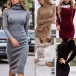 Fashion Solid Color Long Sleeve Turtleneck Slim Fit Sweater Dress