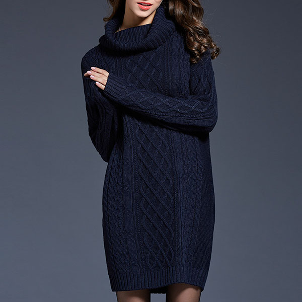 When the days get cold,this cozy yet stylish sweater dress is worth to arouse your attention. Solid color tone design makes it look stylish yet generous. Finished with long sleeve,turtleneck and a fit silhouette,this delicate sweater dress is sure to exude your charm. We thing matching with your over-the-knee boots would make you look charming and beautiful enough!