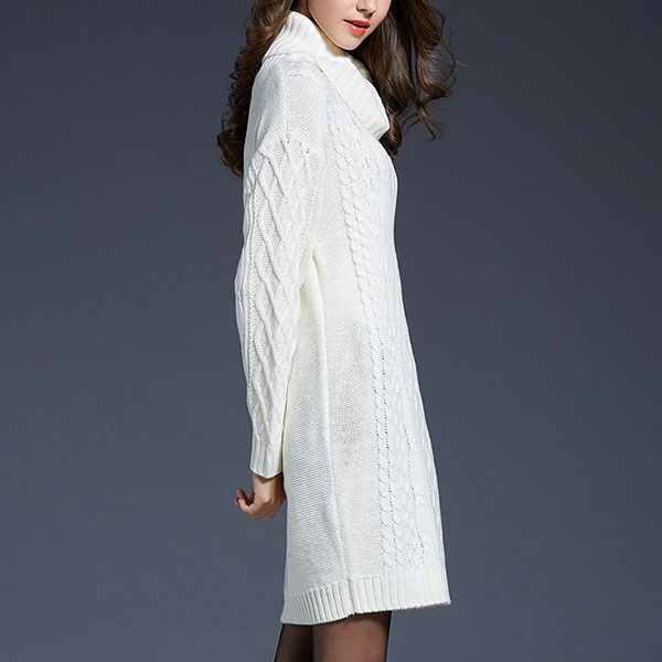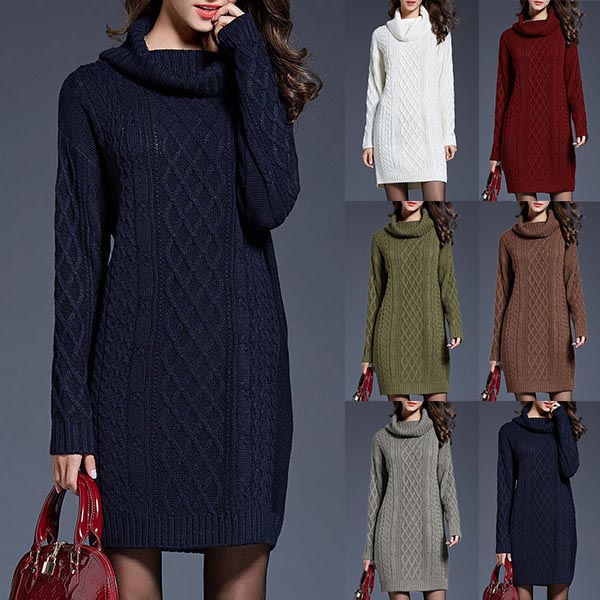 Fashion Solid Color Long Sleeve Turtleneck Sweater Dress