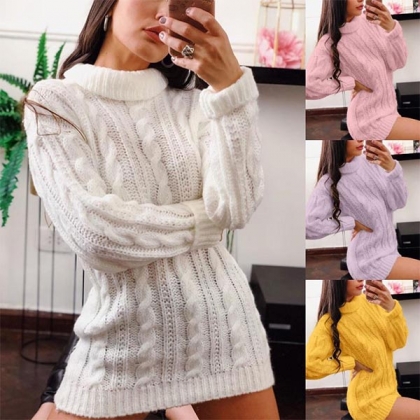 This cozy yet stylish sweater dress is yearning for a place in your wardrobe when the days get cold. It comes with a solid color,finished with long sleeve,turtleneck and a clean silhouette,this sweater dress can offer you a stylish and charming winter look by teaming with your overcoat and over-the-knee boots.