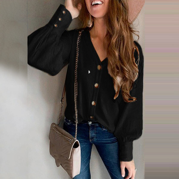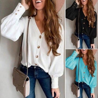 Fashion Solid Color Long Sleeve V-neck Front-button Top Cardigan