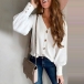 When the days get a little breezy,this long sleeve cardigan can be your good choice. It comes with a solid color,finished with long sleeve,v-neck and single-breasted design,simple in design style,but it can keep you cozy,warm yet stylish. Perfect fit for the breezy mornings and nights.