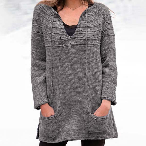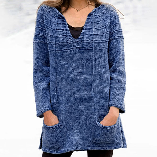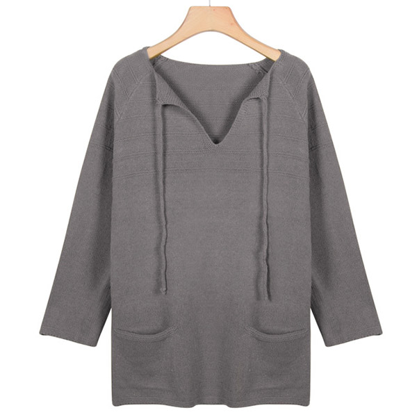 Fashion Solid Color Long Sleeve V-neck Front-pocket Loose Sweater