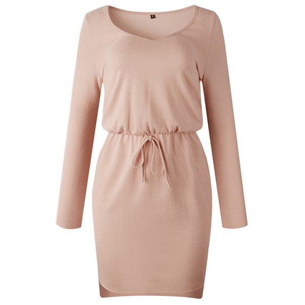 For a mid-afternoon tea,you can count on this dress to win their eyes. Solid color tone design makes it look simple yet generous,while the v-neck and high-low hem design can offer you a sexier look. You just need to match with your favourite heels and handbag,then you can look charming enough!