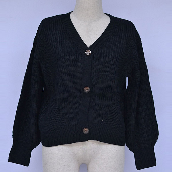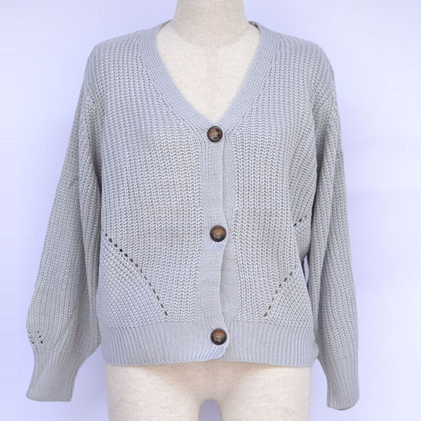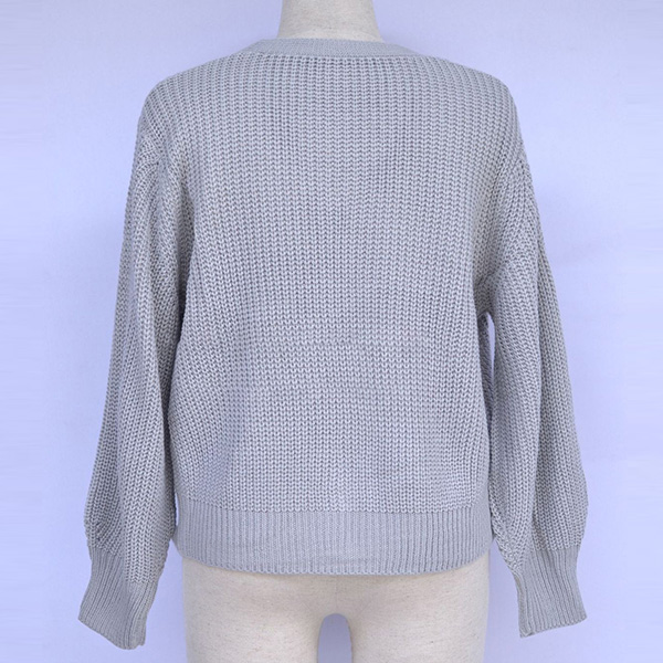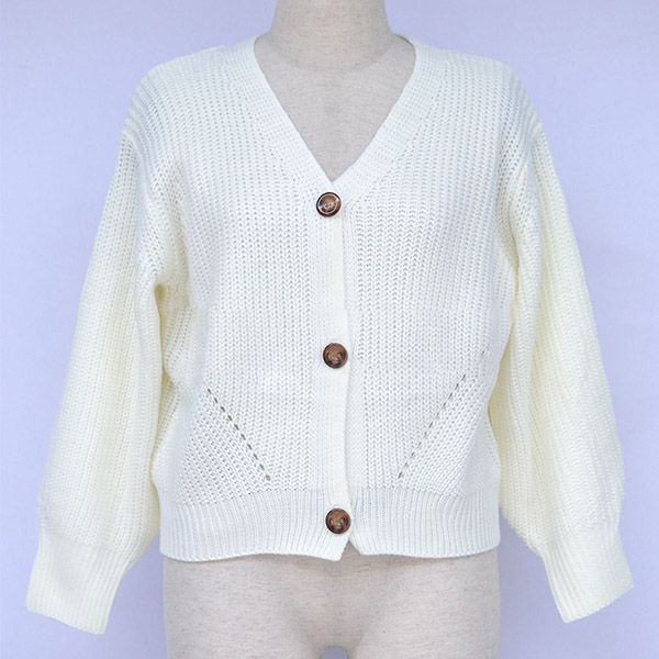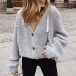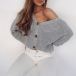 Fashion Solid Color Long Sleeve V-neck Knit Cardigan