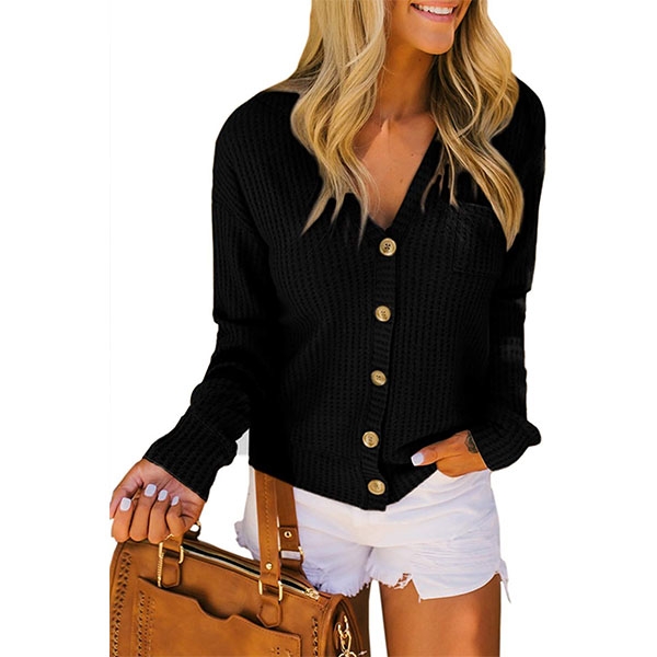 It comes with a solid color,with long sleeve,v-neck and single-breasted design,this piece can