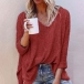Fashion Solid Color Long Sleeve V-neck Loose Knit Top