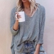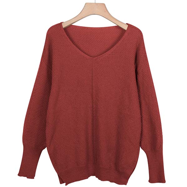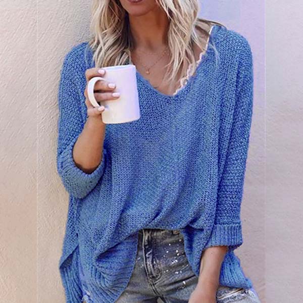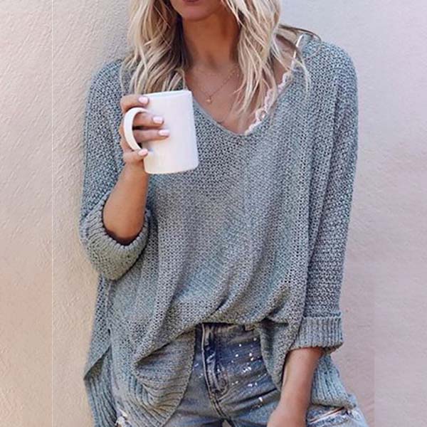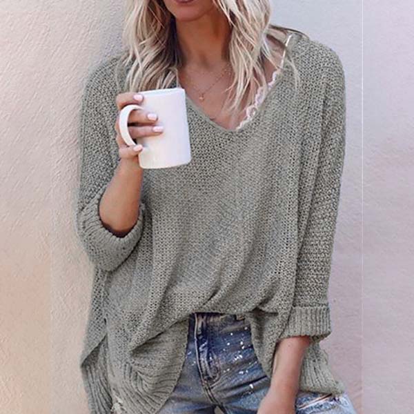 This comforting knit top can give your wardrobe a seasonal update. Solid color style,finished with long sleeve,v-neck and a loose silhouette,simple in design style,but it can offer you a cozy yet stylish style.
