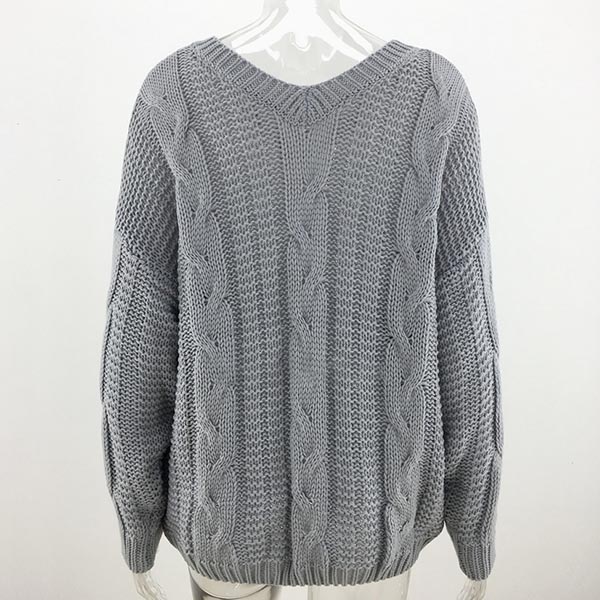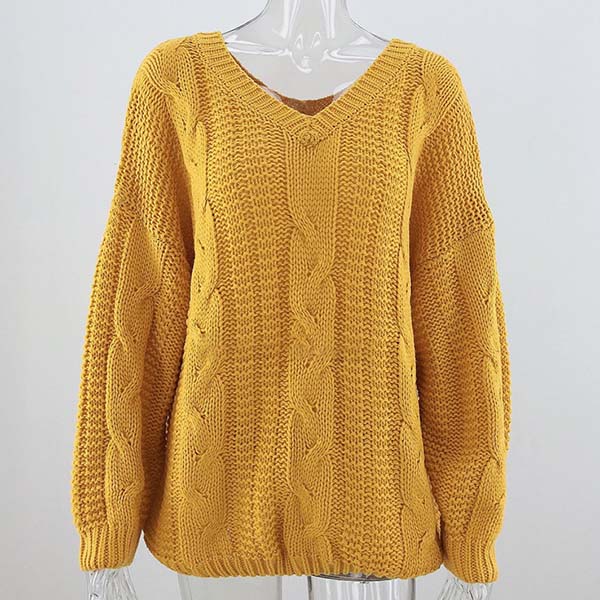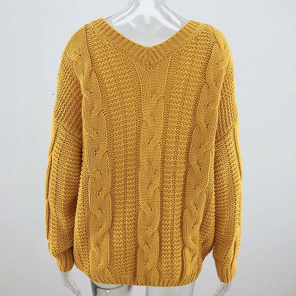 Fashion Solid Color Long Sleeve V-neck Loose Sweater