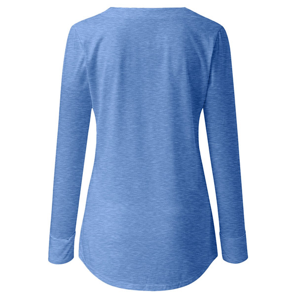 Fashion Solid Color Long Sleeve V-neck Loose T-shirt