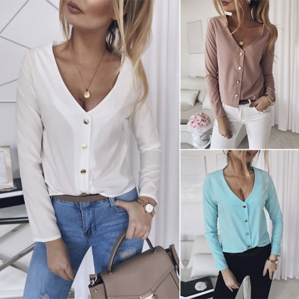 For these neither too hot days nor too cold days,this long sleeve cardigan can be your wise choice. It boasts a solid color,finished with long sleeve,v-neck and metal button details,chic yet stylish. If you like it,then why not add it to your wardrobe?