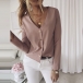 Fashion Solid Color Long Sleeve V-neck Metal Button Cardigan
