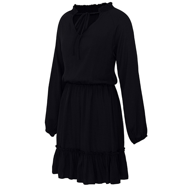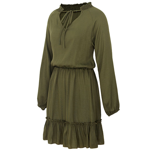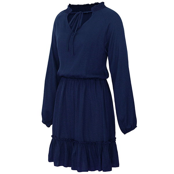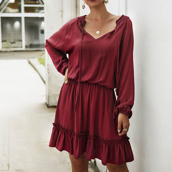 Fashion Solid Color Long Sleeve V-neck Ruffle Hem Dress