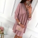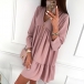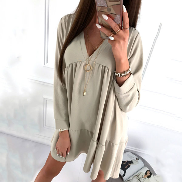 Fashion Solid Color Long Sleeve V-neck Ruffle Hem Loose Dress