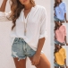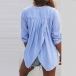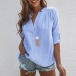 Fashion Solid Color Long Sleeve V-neck Slit Hem Blouse