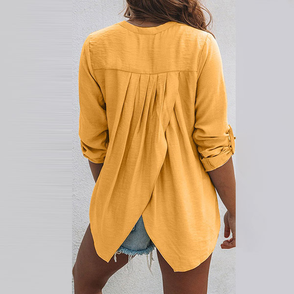 Attracted by this chic and stylish blouse? Then invite it to your wardrobe. It comes with a solid color,the slit hem design at back side will further enhance its charm,while the v-neck design can exude your feminine appeal. You can have a try it to update your style.