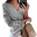 Fashion Solid Color Long Sleeve V-neck T-shirt