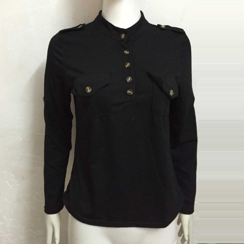 This t-shirt features solid color style,with long sleeve and v-neck design,neckline decorated with buttons,