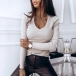 Simple t-shirt always can offer you more matching opportunities,this piece is a good example. Solid color tone design makes it look simple,stylish yet generous. Crafted from soft and breathable fabric,with long sleeve and v-neck design,t-shirt is sure to give you a comfortable day.