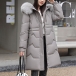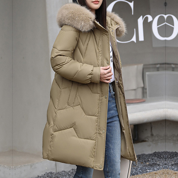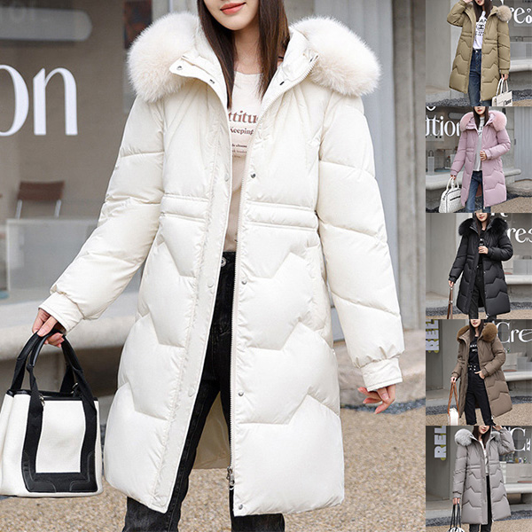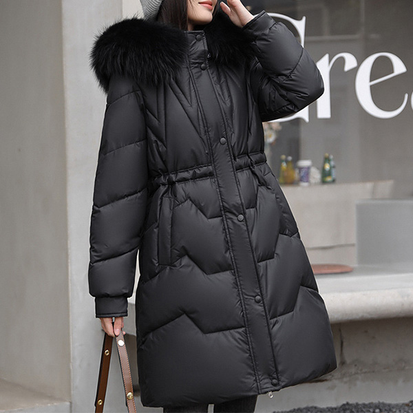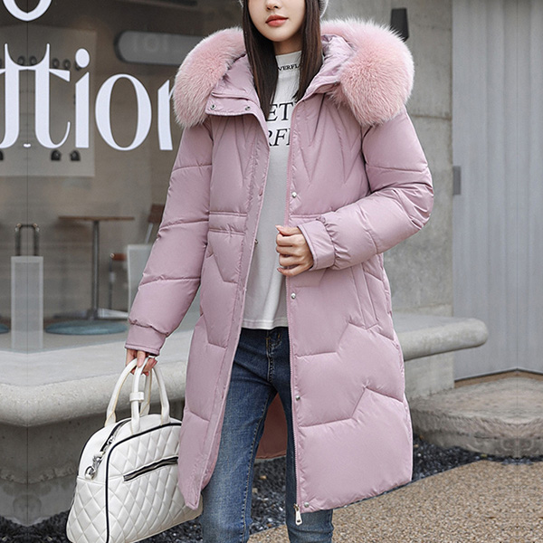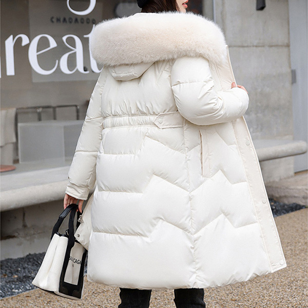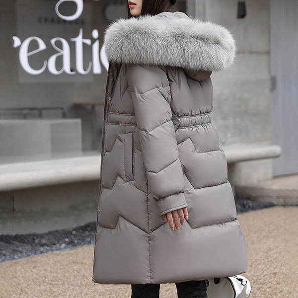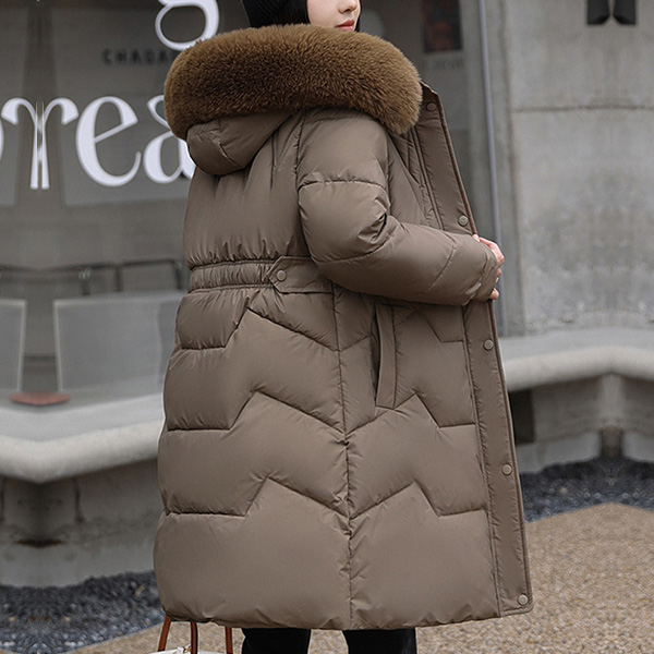 Mode Enfärgad Quiltad Plysch Långärmad Varm Hooded Longline Coat för kvinnor