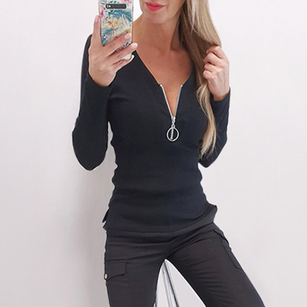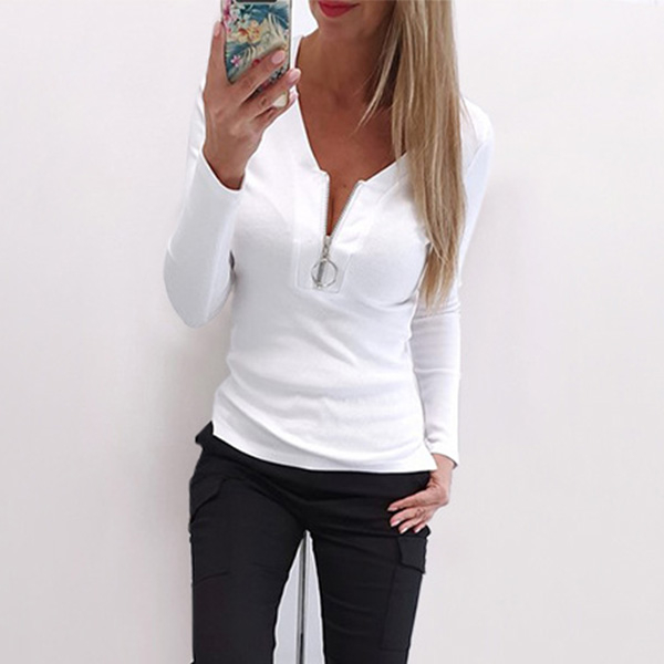 Thanks to the soft and breathable fabric,you can have a comfortable day in this t-shirt. Solid color tone design makes it look simple,stylish yet generous,while the zipper v-neck design will boost its charm. Your off-duty days and casual weekends call for such a cozy,stylish piece.