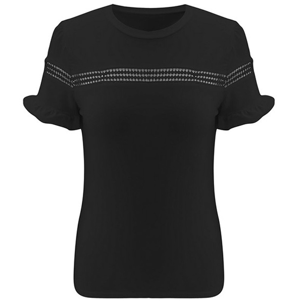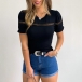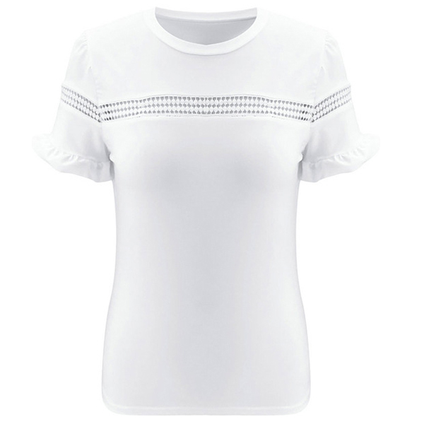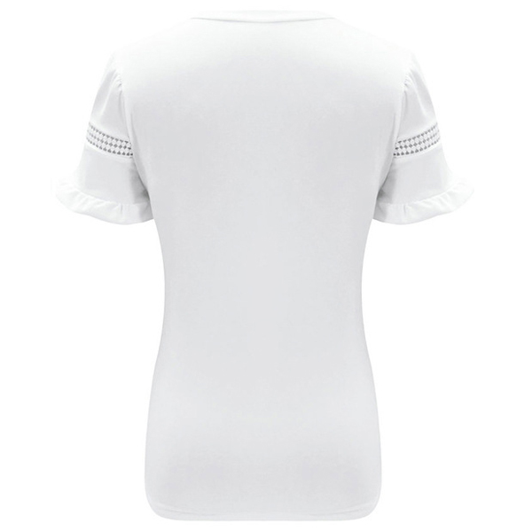 Fashion Solid Color Lotus Sleeve Round Neck Hollow Out T-shirt