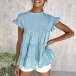 Fashion Solid Color Lotus Sleeve Round Neck Loose Top