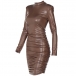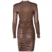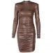Den här klänningen är sexig och chic med skenhals, lång ärm och en smal passform. Dessutom skapar de rika detaljerna en fantastisk visuell effekt. Välj mellan de eleganta färgerna svart och kaffe. Vilken färg föredrar du?