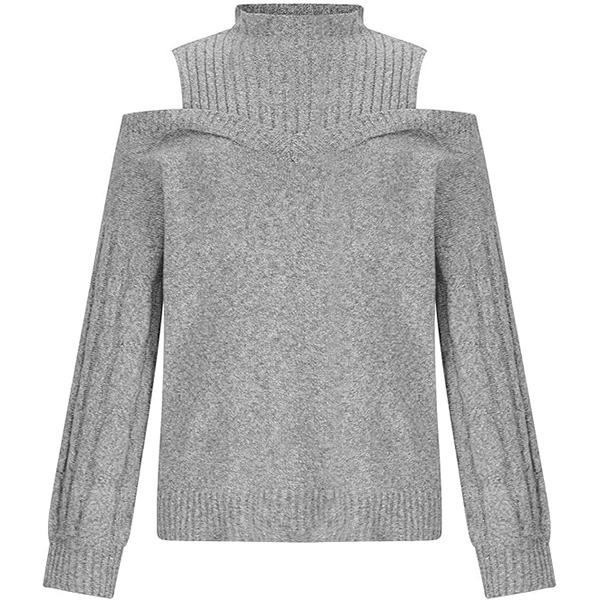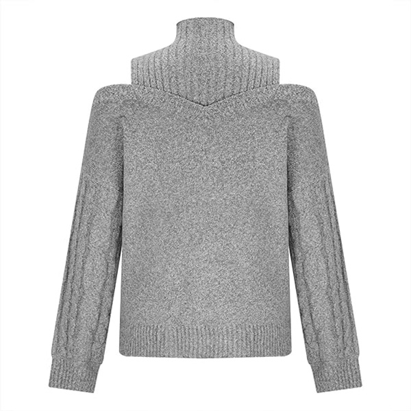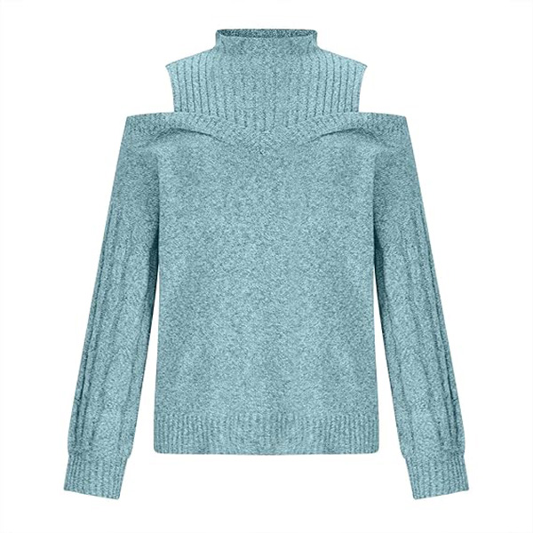 Mode Enfärgad Mock-neck Öppen axel långärmad stickad tröja