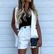 Fashion Solid Color Notched Lapel Vest + High Waist Shorts Two-piece Set