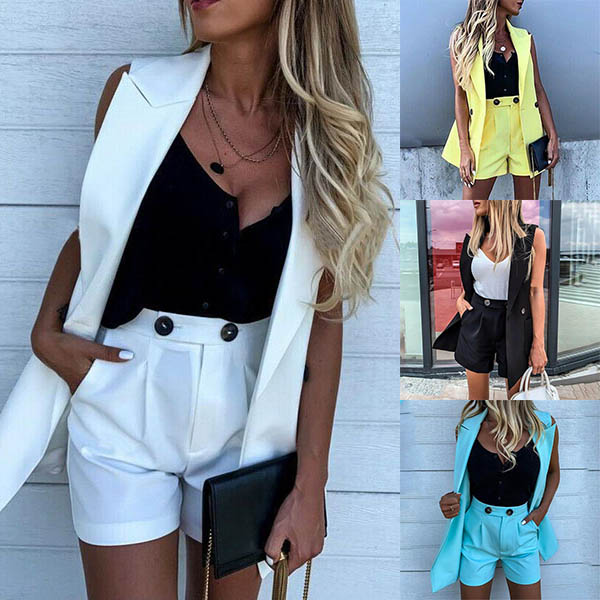 Start your wonderful day form this delicate yet stylish two-piece set. It comes with a solid color,including a notched lapel vest and a high waist shorts,this two-piece set knows how to make you look elegant,confident and stylish while keeping you cozy. It is also a good chance to update your style.