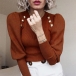 Fashion Solid Color Puff Sleeve Round Neck Knit Top