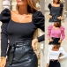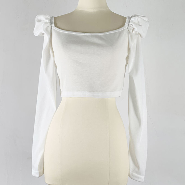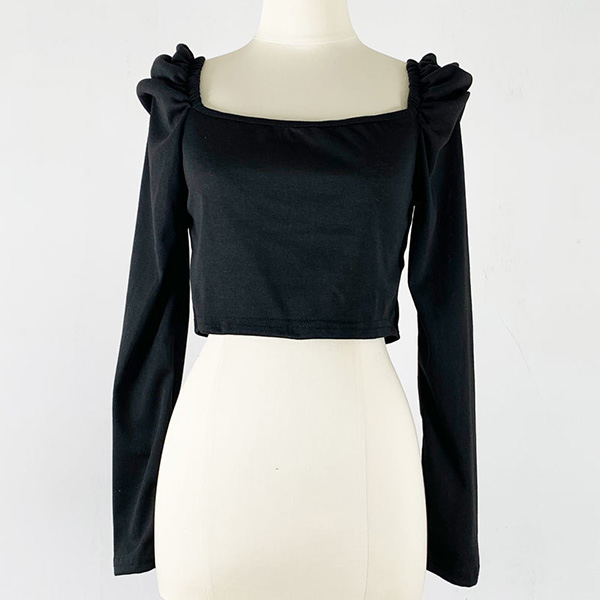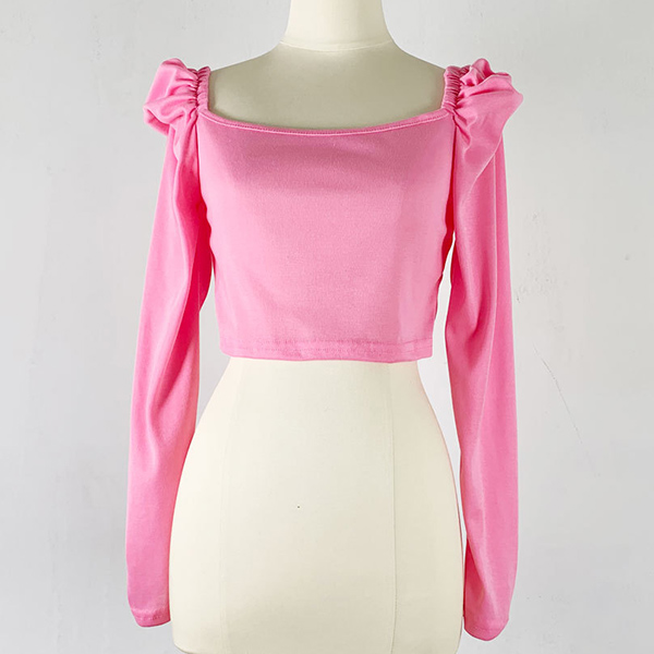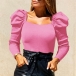 Fashion Solid Color Puff Sleeve Square Collar Slim Fit Top