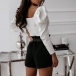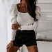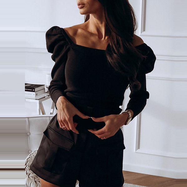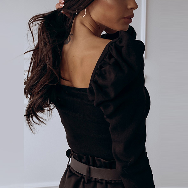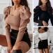 Fashion Solid Color Puff Sleeve Square Collar T-shirt