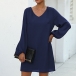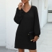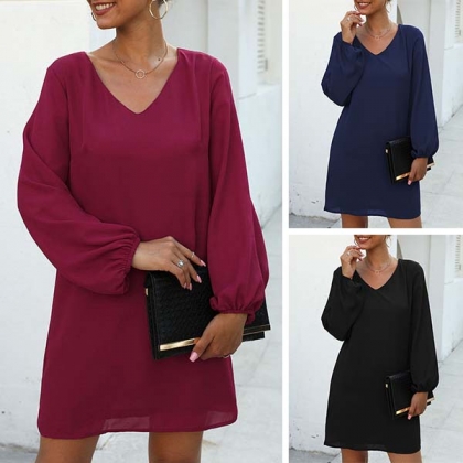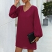 Fashion Solid Color Puff Sleeve V-neck Loose Dress