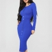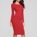 Fashion Solid Color Round Neck Front-button Slim Fit Dress