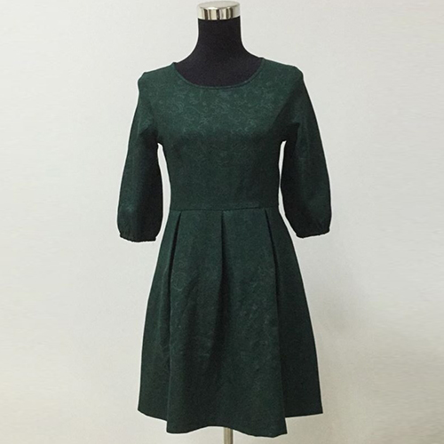 the wearing effect of this family fitted dress. Boasting solid color, round neck and half sleeve, its pleated