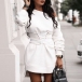 It is a good way to boost your daily style with the help of this sweatshirt dress. Solid color style,the fit silhouette and lace-up design at the waist part can better highlight your slender figure. When matching with your over-the-knee boots,you can look charming and beautiful enough!