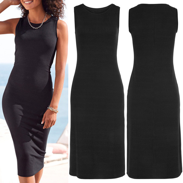 Modekläder - Enfärgad rundhalsad ribbad tankklänning