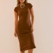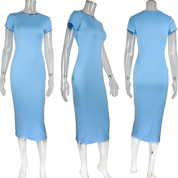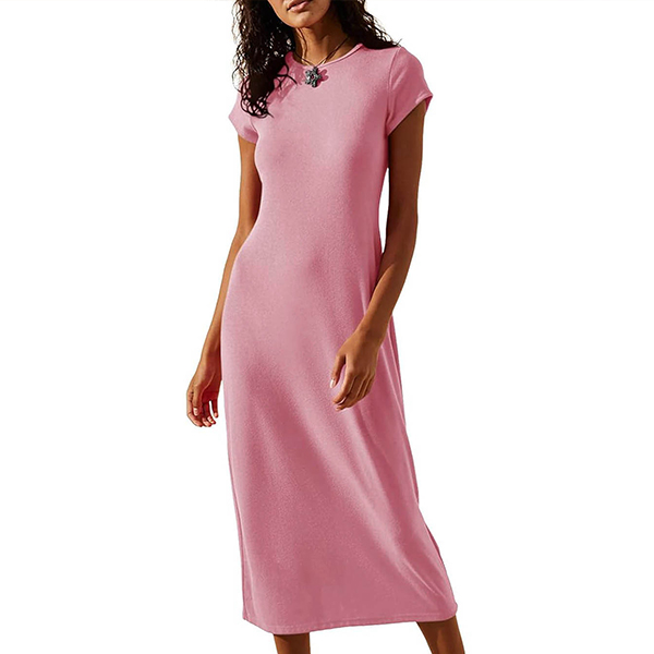 Enfärgad midiklänning med rund hals och korta ärmar