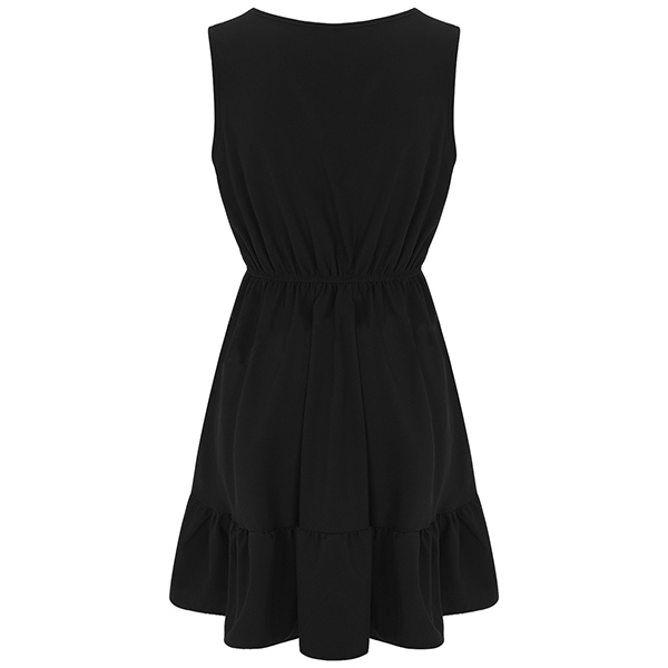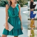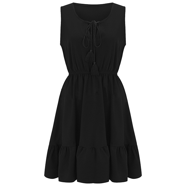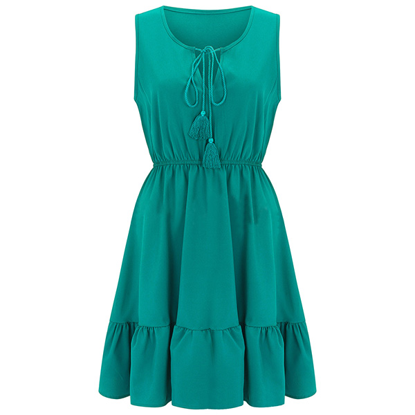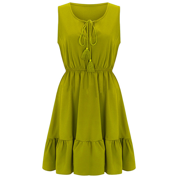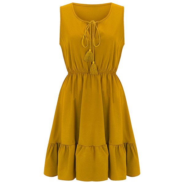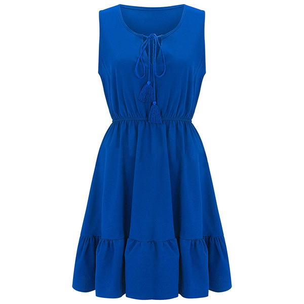 Fashion Solid Color Round Neck Sleeveless Cinch Waist Dress