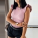 This t-shirt comes with a solid color,the fit silhouette design can better highlight your perfect body-line. Moreover,the unique cuff design will further enhance its charm. Trust me,inviting this cozy,stylish and all-match t-shirt to your wardrobe would be a wise choice.