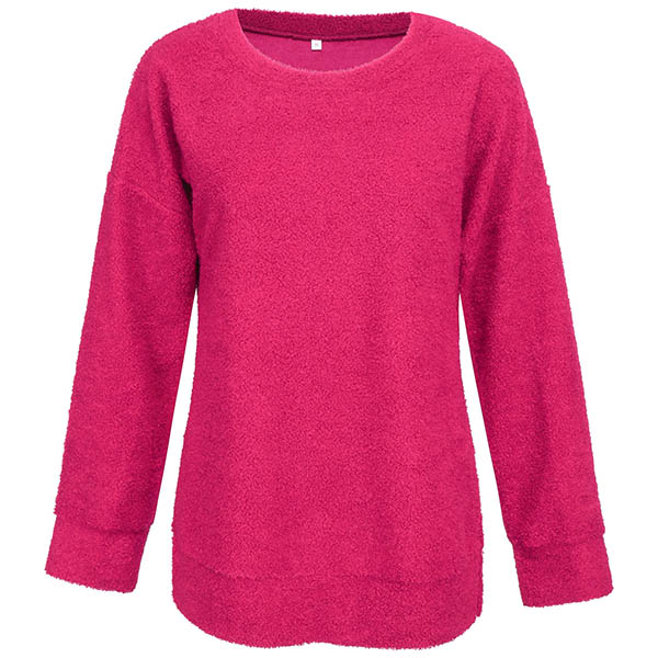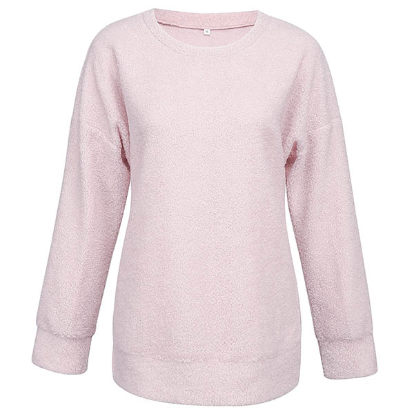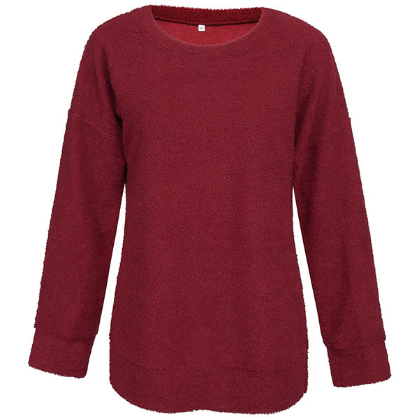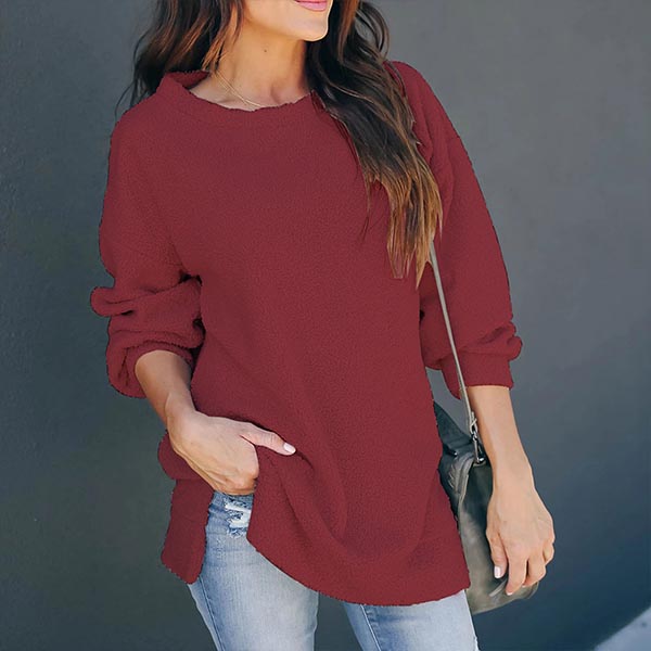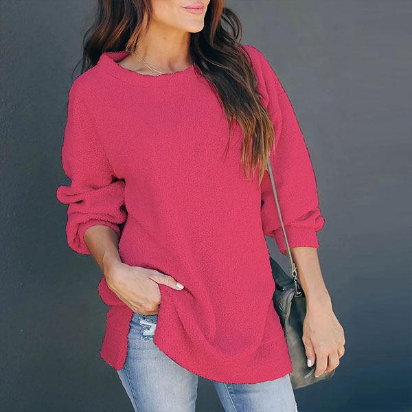 Fashion Solid Color Round Neck Slit Hem Plush Sweatshirt