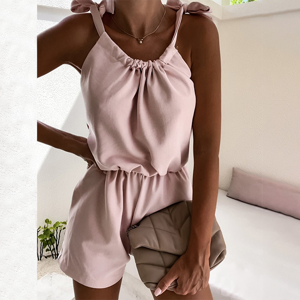 Romper Self-tie Fashion Solid Color