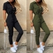 Mode enfärgad kortärmad jumpsuit med hög midja och polokrage (storlek går liten)