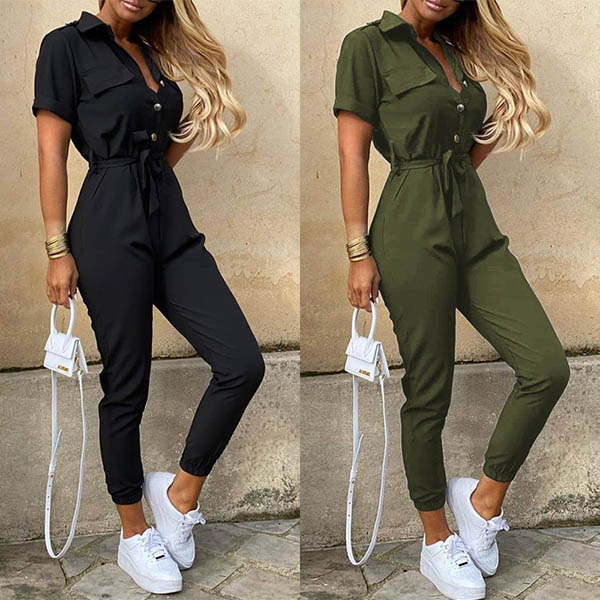 Din stil och charm kan få ett lyft när du klär upp dig med denna jumpsuit! En enfärgad stil med korta ärmar, POLO-krage och design med hög midja - detta plagg kan visa upp din smala figur samtidigt som det är bekvämt. Prova på en annan modestil med detta plagg!