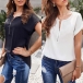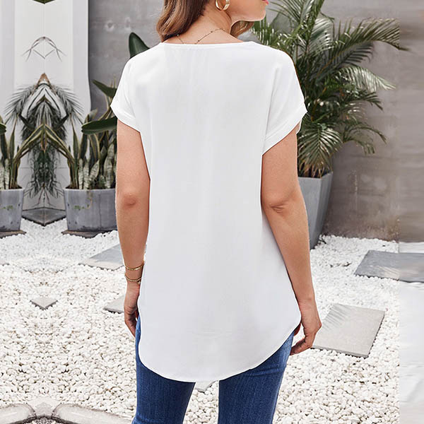 Fashion Solid Color Short Sleeve Round Neck Arc Hem Top